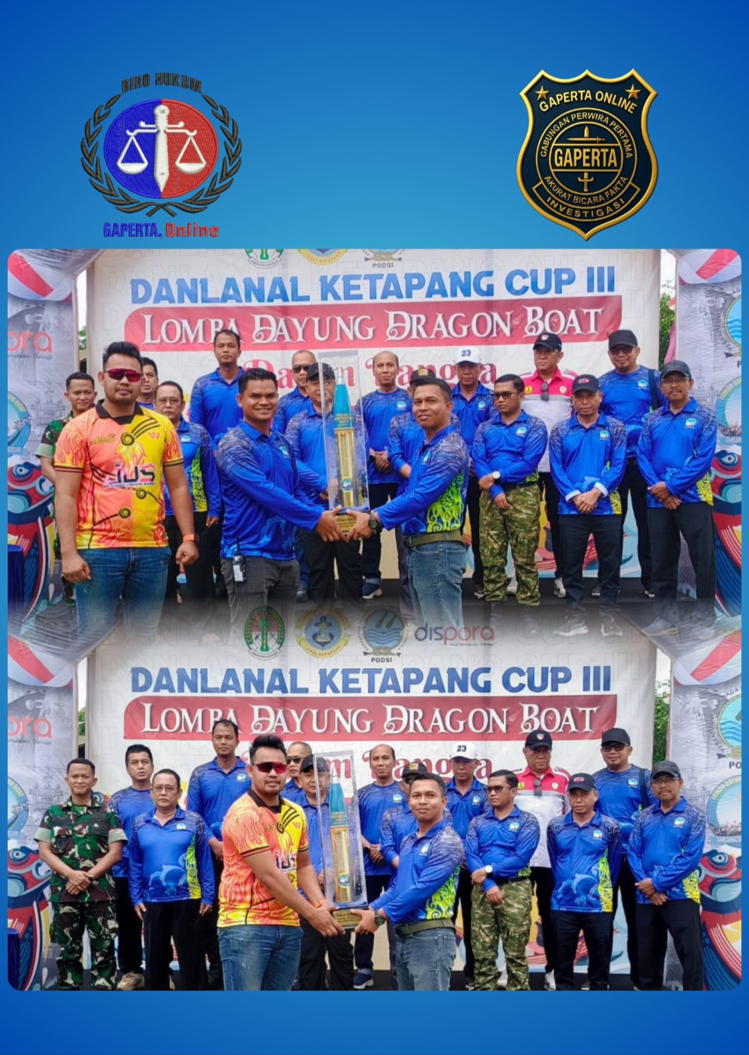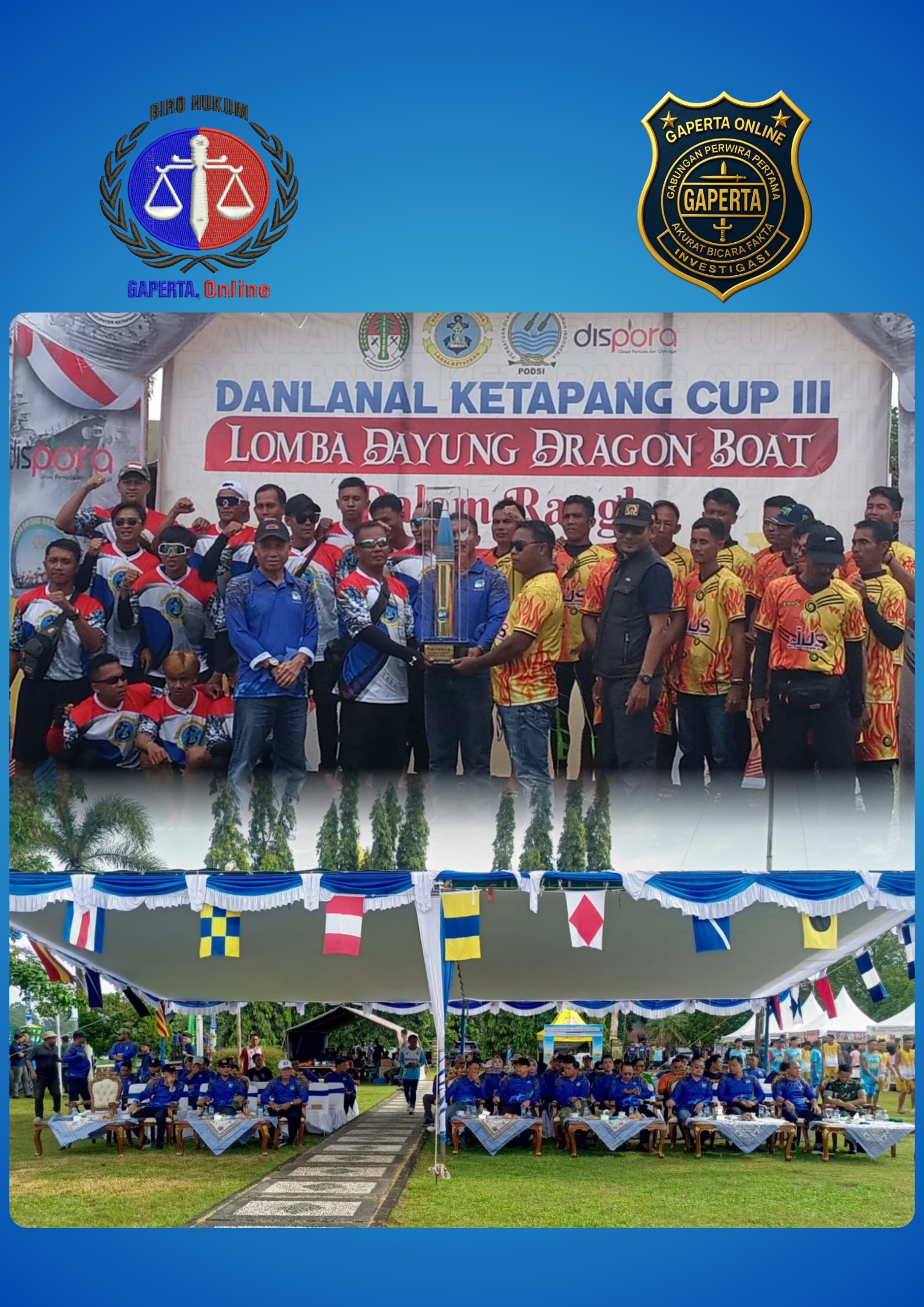 menyampaikan penghargaan yang sebesar-besarnya kepada seluruh peserta, panitia, instansi pemerintah daerah, pihak keamanan, tenaga kesehatan, serta masyarakat Ketapang yang turut menyukseskan penyelenggaraan lomba.