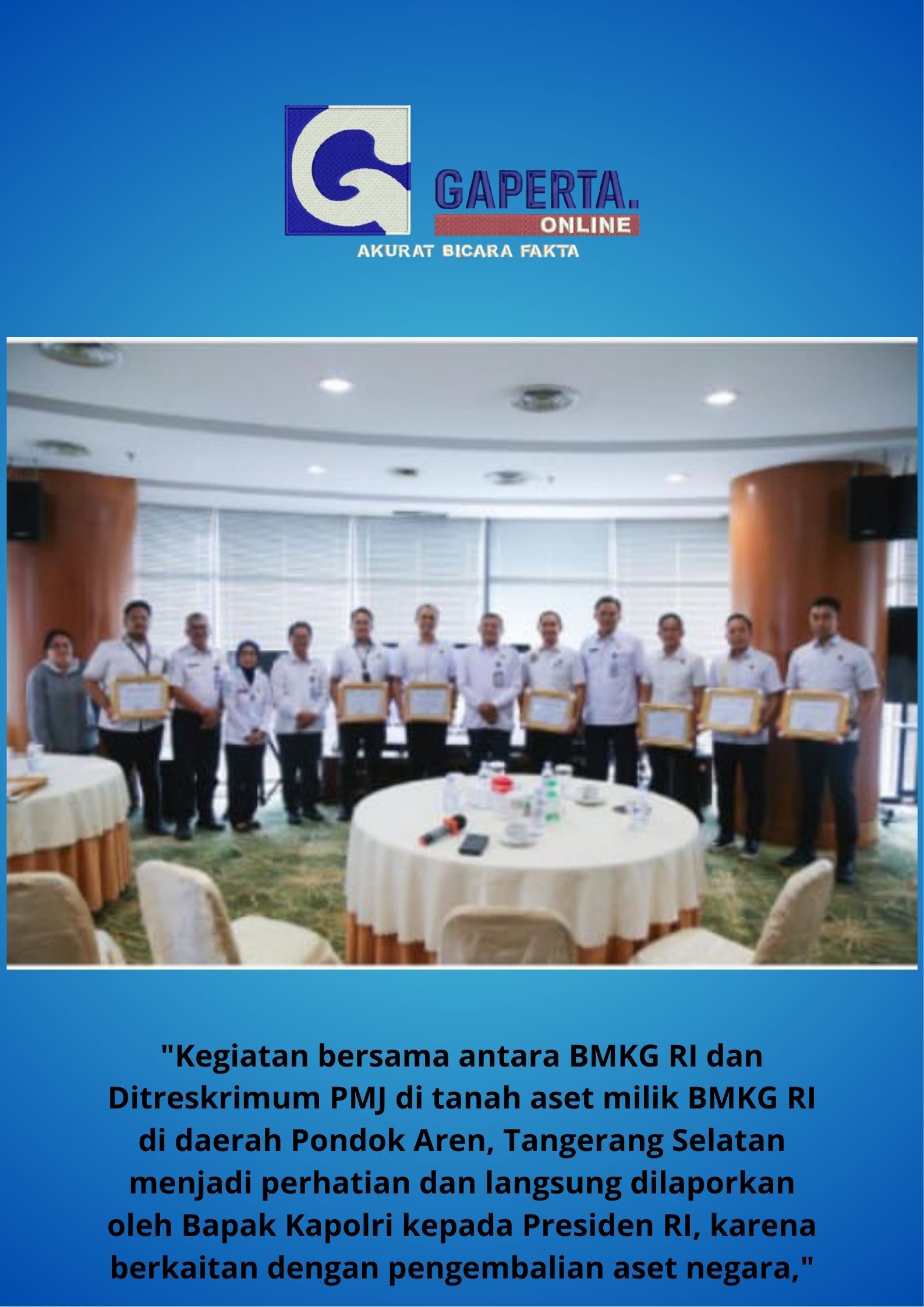 “Kegiatan bersama antara BMKG RI dan Ditreskrimum PMJ di tanah aset milik BMKG RI di daerah Pondok Aren, Tangerang Selatan menjadi perhatian dan langsung dilaporkan oleh Bapak Kapolri kepada Presiden RI, karena berkaitan dengan pengembalian aset negara,” ujar Putu Kholis.