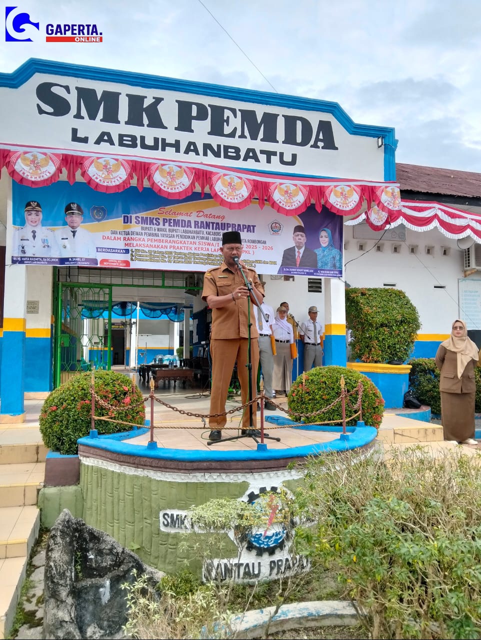 Asisten I Pemerintah Kabupaten (Pemkab) Labuhanbatu, Drs. Sarimpunan Ritonga, M.Pd., bertindak sebagai pembina upacara bendera di Sekolah Menengah Kejuruan Swasta (SMKS) Pemda Rantauprapat pada hari Senin. Upacara ini dilaksanakan di lapangan sekolah yang berlokasi di Jalan K.H. Dewantara No. 104, Sioldengan, Bakaran Batu, Rantau Selatan, Kabupaten Labuhanbatu.