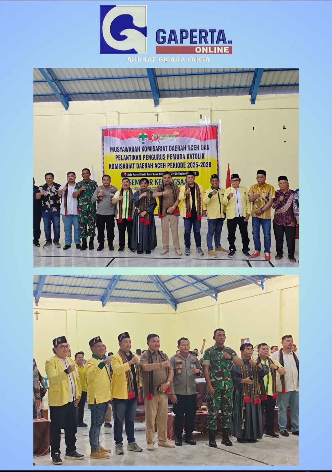 Bupati Aceh Tenggara, H.M. Salim Fakhri, S.E., M.M., bersama Kapolres Aceh Tenggara, AKBP Yulhendri, S.I.K., dan jajaran Forum Koordinasi Pimpinan Daerah (Forkopimda), menghadiri Musyawarah Komisariat Daerah (Muskomda) sekaligus pelantikan Pengurus Pemuda Katolik Daerah Aceh periode 2025–2028.