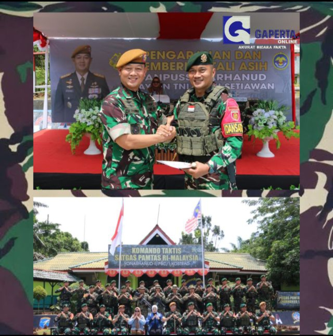 Komandan Pusat Kesenjataan Arhanud (Danpussenarhanud) Mayjen TNI R. Edi Setiawan, didampingi Ibu Cut Siti Hasyimah, melaksanakan kunjungan kerja ke Satgas Pamtas RI–Malaysia Yonarhanud 1/PBC/1 Kostrad di Pos Kotis Gabma Entikong, Rabu (5/11/2025).