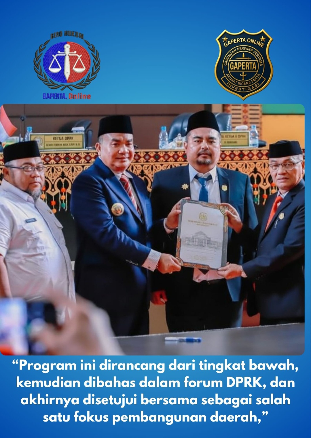 “Program ini dirancang dari tingkat bawah, kemudian dibahas dalam forum DPRK, dan akhirnya disetujui bersama sebagai salah satu fokus pembangunan daerah,” ujar nya