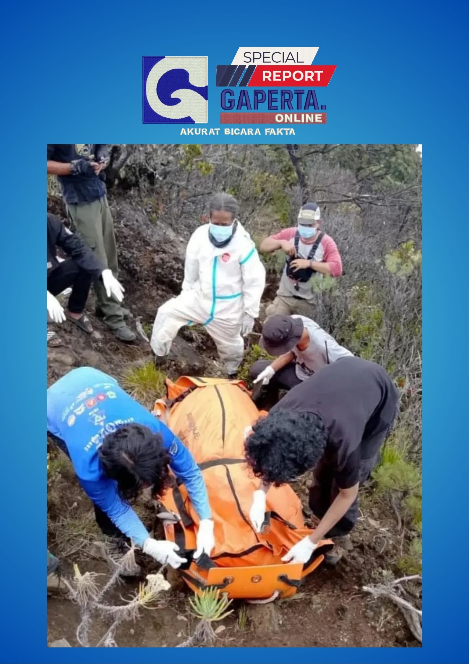 Tim gabungan yang terdiri dari POLRES Kuningan, BPBD Kuningan, BTNGC, LSM Akar, Pengelola Pendakian Gunung Ciremai Via Linggajati, dan INAFIS terlibat dalam proses evakuasi ini.