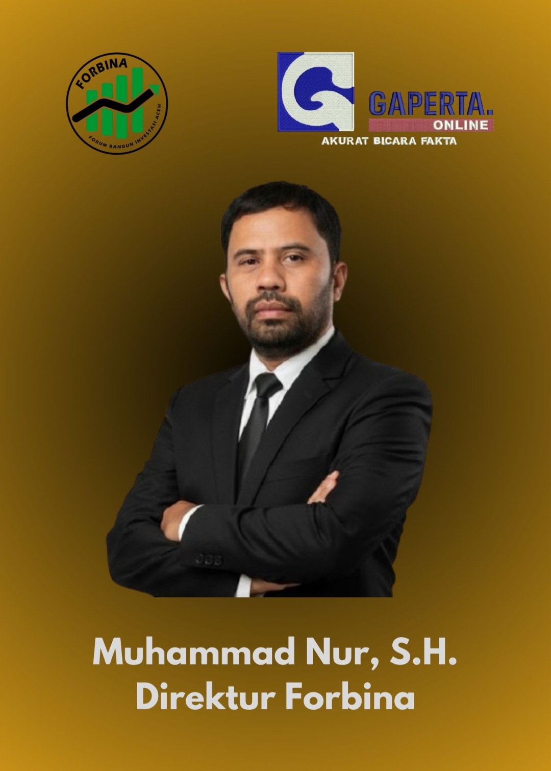Forum Bangun Investasi Aceh (Forbina) mendesak Pemerintah Aceh untuk tidak hanya berhenti pada ultimatum terhadap tambang ilegal. Direktur Forbina, Muhammad Nur, S.H., menekankan perlunya percepatan penyusunan Qanun tentang Pertambangan Wilayah Rakyat (WPR).