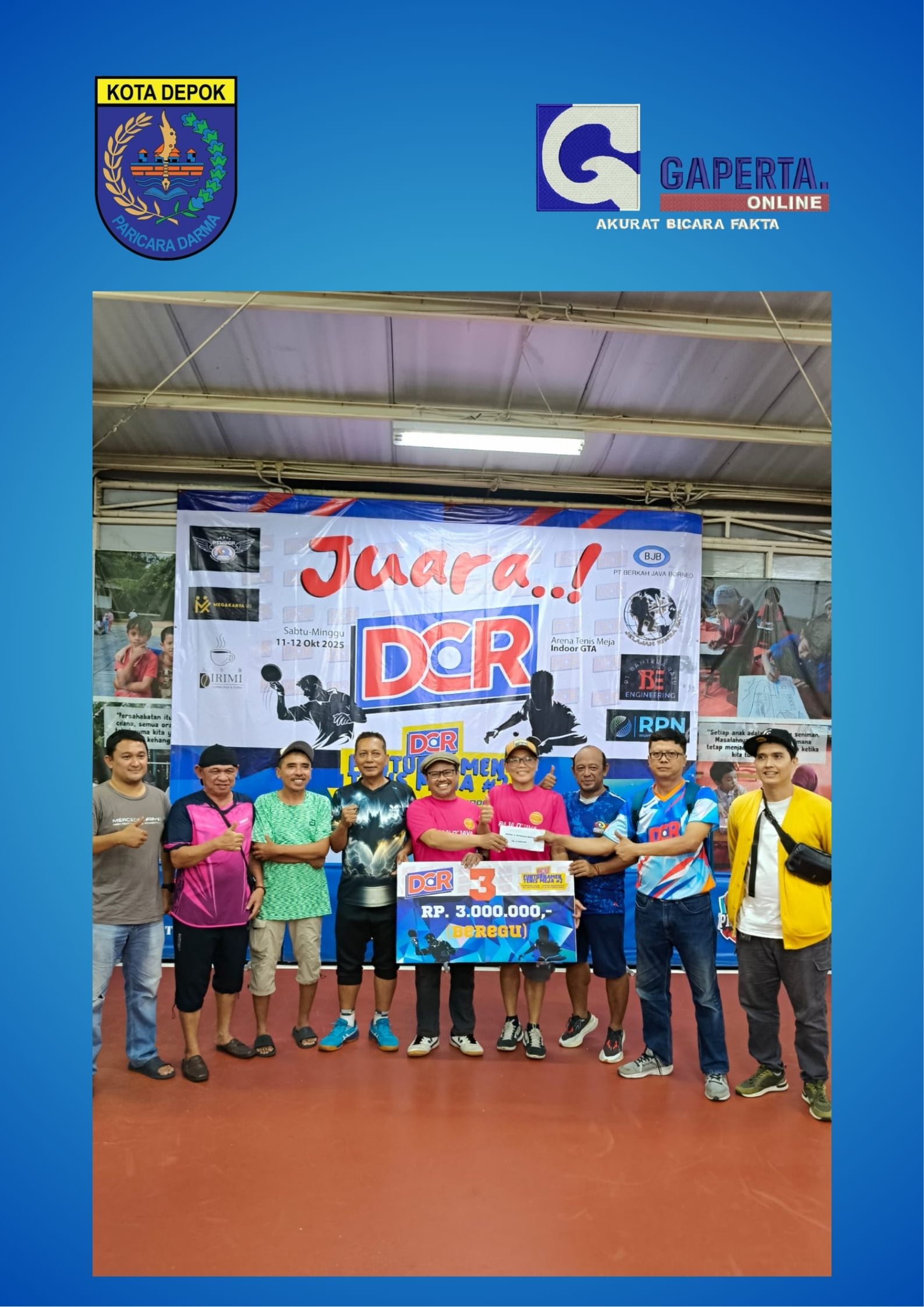 Kemeriahan Funturnamen Tenis Meja #2 yang diselenggarakan oleh DCR Enterprise di arena indoor DTC, Griya Tugu Asri, Cimanggis-Depok, pada 11-12 Oktober 2025 sukses memukau para pecinta tenis meja.