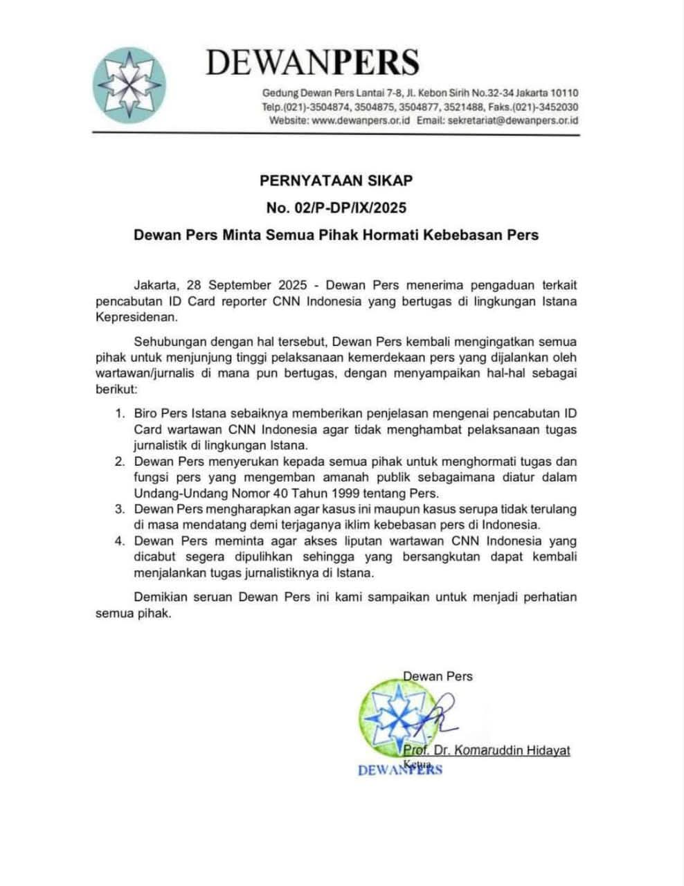 Pernyataan sikap dewan pers-(Gaperta.online-Dok)