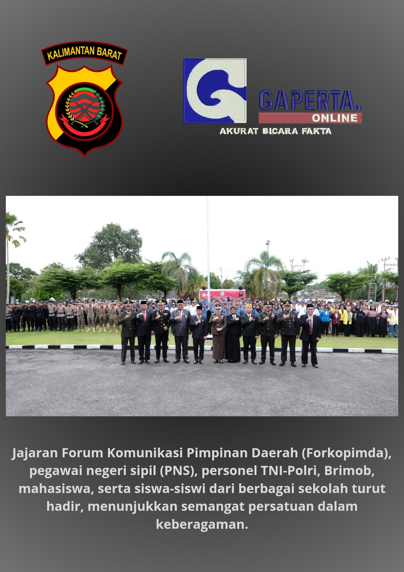 Jajaran Forum Komunikasi Pimpinan Daerah (Forkopimda), pegawai negeri sipil (PNS), personel TNI-Polri, Brimob, mahasiswa, serta siswa-siswi dari berbagai sekolah turut hadir, menunjukkan semangat persatuan dalam keberagaman.