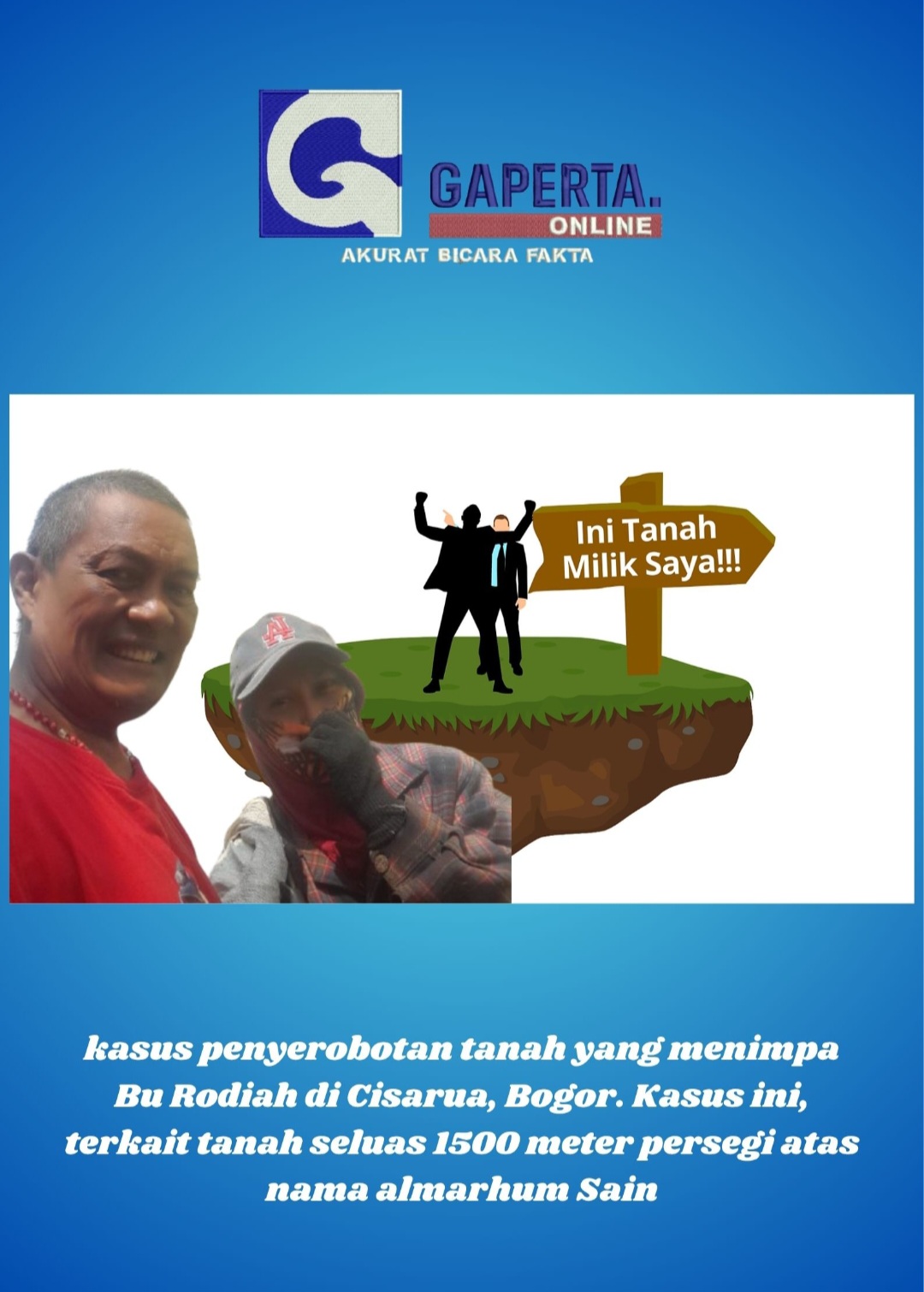 Kasus ini, terkait tanah seluas 1500 meter persegi atas nama almarhum Sain, diduga dilakukan oleh almarhum Serma Msr dan kini terhenti di Unit 3 Tipikor Polres Bogor.