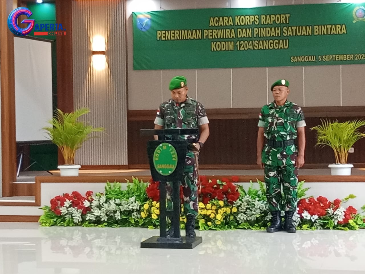 Komando Distrik Militer (Kodim) 1204/Sanggau menggelar acara Korps Raport Penerimaan Perwira dan Pindah Satuan Bintara pada hari Jumat (5/9/2025). Acara yang dilaksanakan di Aula Makodim 1204/Sanggau ini dipimpin langsung oleh Komandan Kodim 1204/Sanggau, Letkol Inf Subandi.
