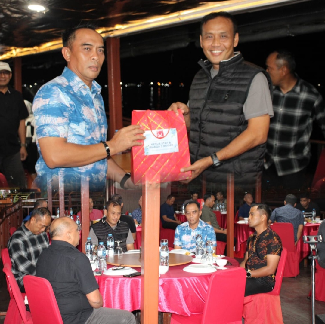 Danrem 121/Abw Brigjen TNI Purnomosidi, S.I.P., M.A.P., M.Han., selaku Dankolakopsrem 121/Abw hadiri makan malam bersama para pejabat Delegasi MK 3 Briged Infantri Malaysia, bertempat di Kapal Bandong-Bandong Pontianak, Kalimantan Barat, Rabu (03/12/2025) malam.
