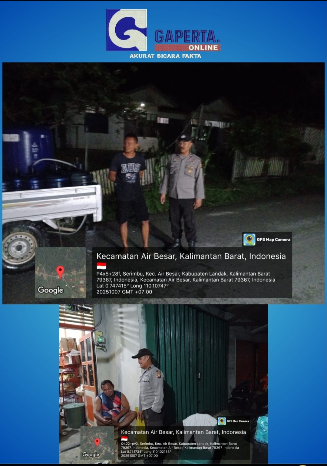 Polsek Air Besar, di bawah naungan Polres Landak dan Polda Kalbar, meningkatkan kegiatan patroli malam di wilayah hukumnya. Langkah ini diambil untuk menjaga keamanan dan ketertiban masyarakat (kamtibmas) di Kecamatan Air Besar, Kabupaten Landak, Kalimantan Barat, Selasa (7/10/2025).