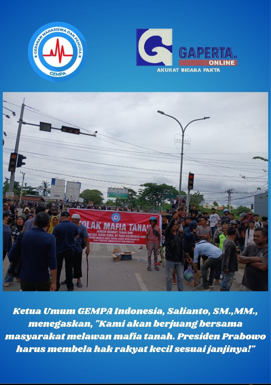 GEMPA Indonesia mengecam keras praktik mafia tanah dan meminta Presiden Prabowo turun tangan.