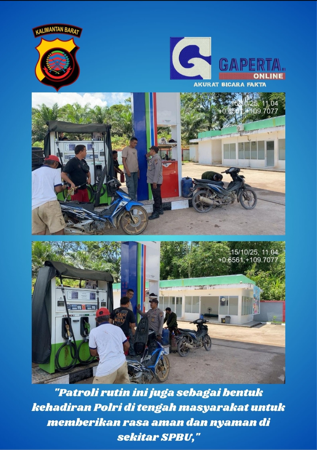 “Patroli rutin ini juga sebagai bentuk kehadiran Polri di tengah masyarakat untuk memberikan rasa aman dan nyaman di sekitar SPBU,” ujar Ipda Uwes SH.