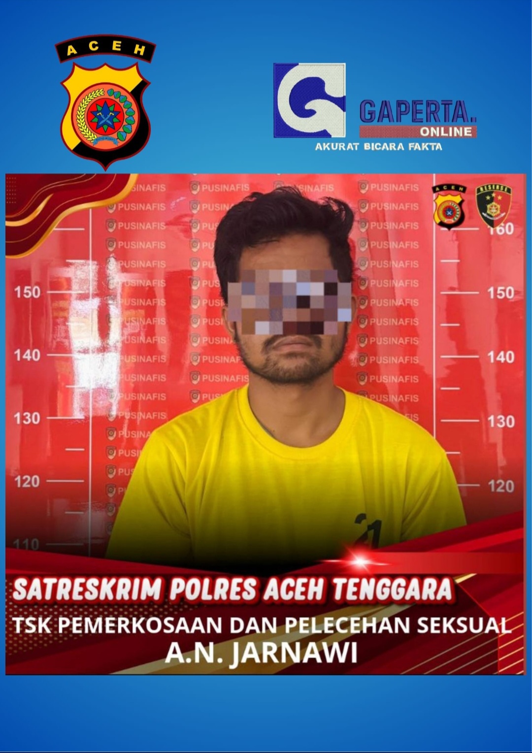 Personel Unit Perlindungan Perempuan dan Anak (PPA) Sat Reskrim Polres Aceh Tenggara, dengan bantuan personel Polsek Bandar Polres Bener Meriah, berhasil menangkap seorang pria terkait tindak pidana pemerkosaan dan/atau pelecehan seksual terhadap anak di bawah umur.