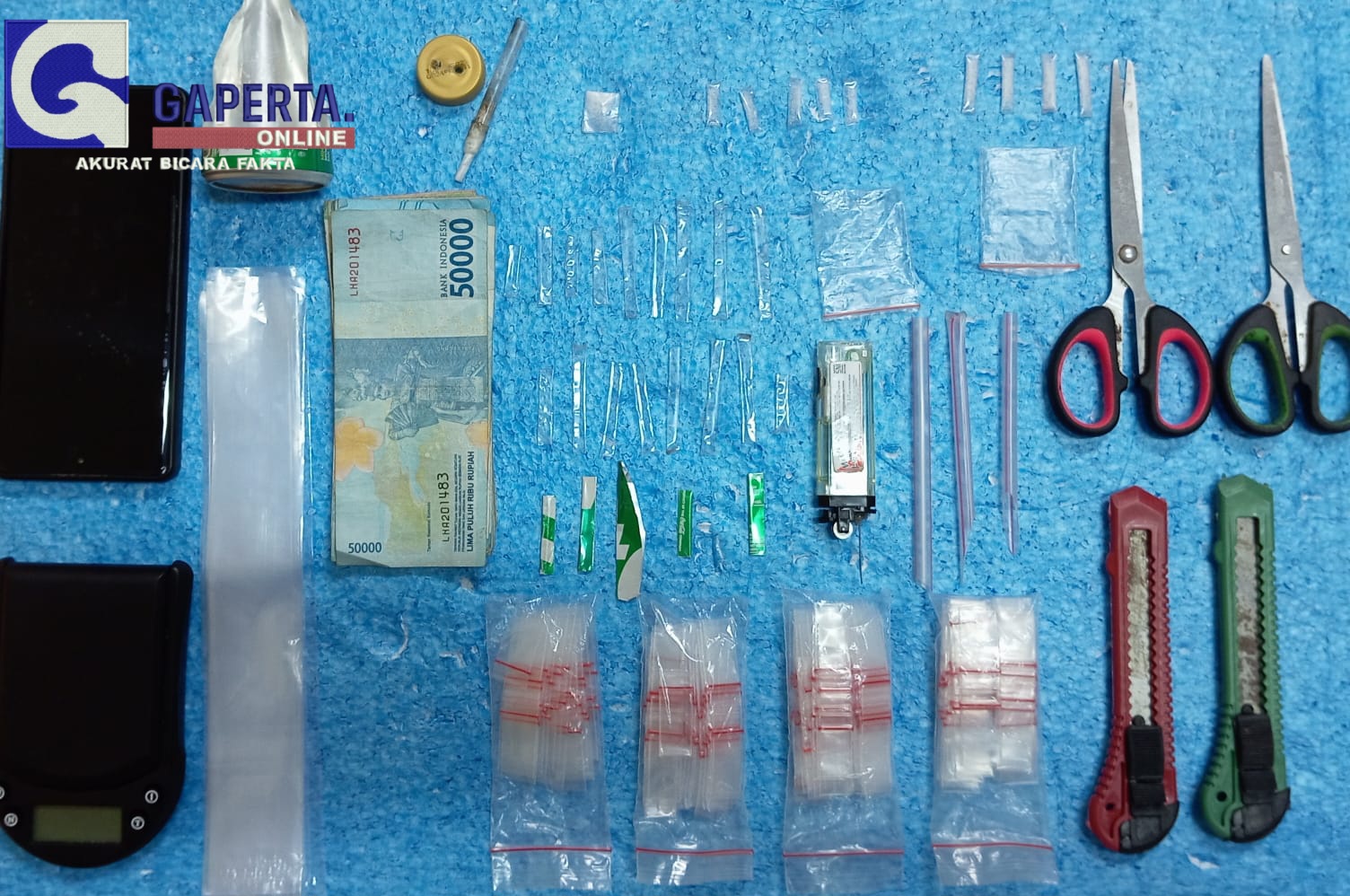 Dari penggeledahan yang dilakukan, petugas menemukan barang bukti berupa 10 paket sabu seberat 0,78 gram bruto, serta sejumlah peralatan yang digunakan untuk mengonsumsi dan mengedarkan narkoba, seperti plastik klip, pisau cutter, gunting, timbangan elektrik, pipet runcing, dan uang tunai sebesar Rp700.000.