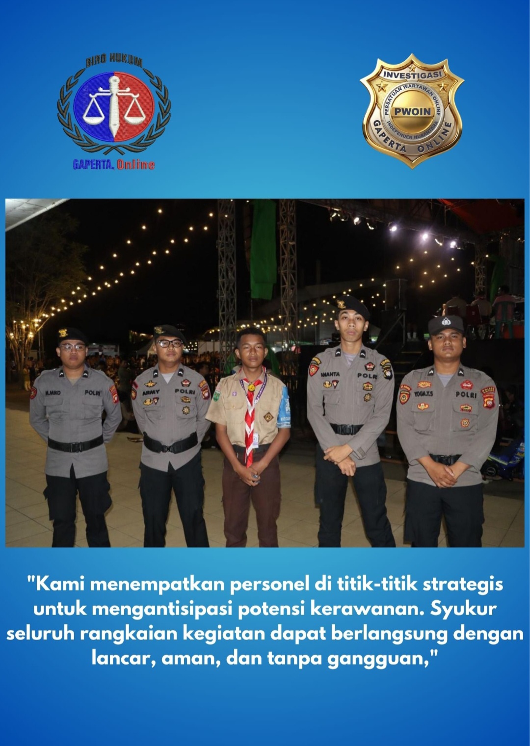 “Kami menempatkan personel di titik-titik strategis untuk mengantisipasi potensi kerawanan. Syukur seluruh rangkaian kegiatan dapat berlangsung dengan lancar, aman, dan tanpa gangguan,” ujarnya.