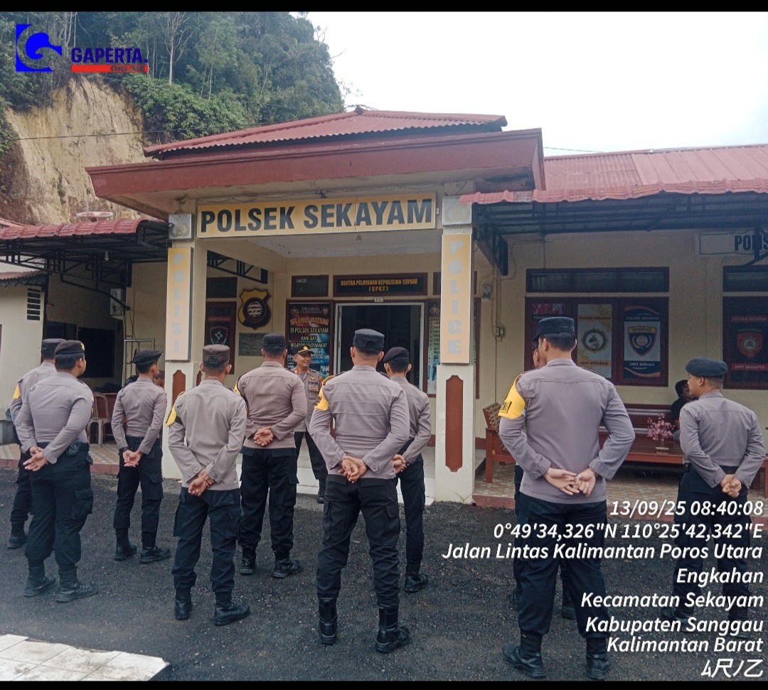 Polsek Sekayam, Kabupaten Sanggau, Kalimantan Barat, menggelar apel siaga di halaman Mapolsek Sekayam, Sabtu (13/9/2025) pagi. Apel tersebut dipimpin langsung oleh Kapolsek Sekayam yang baru [AKP.Sutikno S.sos, MAP]