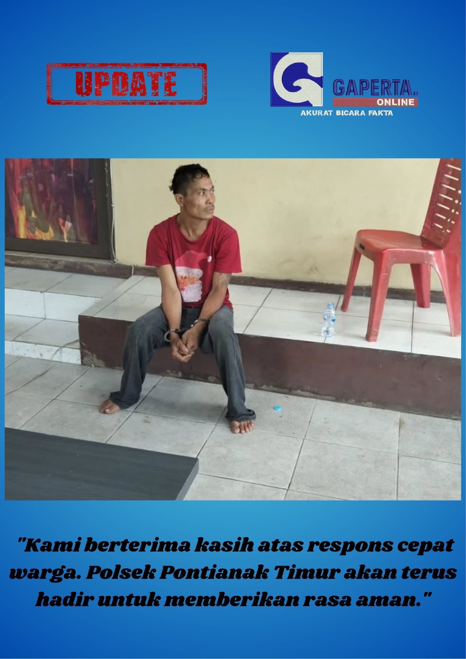 “Kami menerima laporan tentang seorang warga yang bertingkah laku tidak wajar dan meresahkan di Jl. Panglima Aim. Tim kami bergerak cepat dan berhasil mengamankan pelaku tanpa perlawanan,” jelasnya.