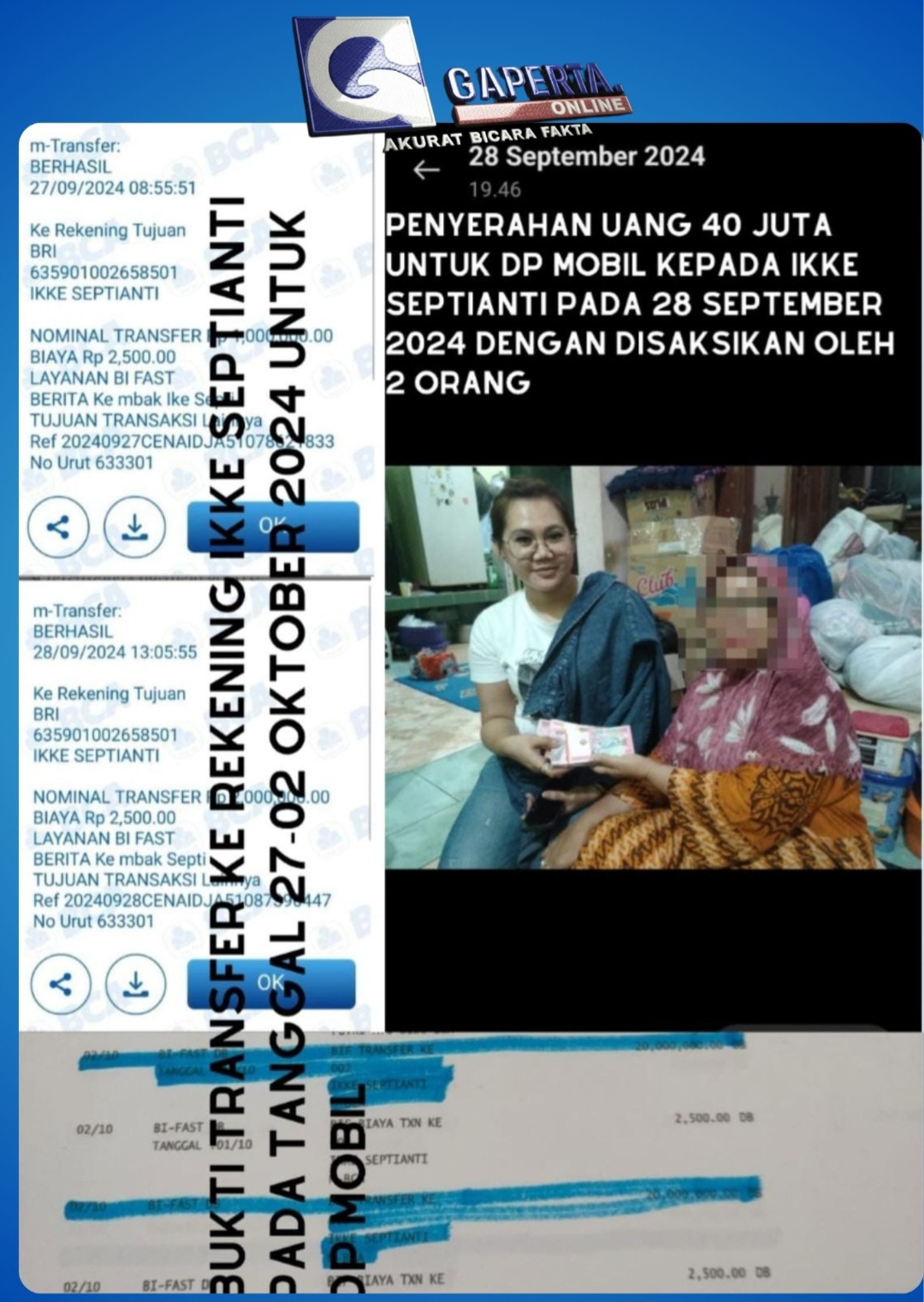 “Selain diberikan cash, uang muka dibayar via transfer bertahap ke rekening Ikke. Saya ingatkan, jangan sampai membuat laporan palsu, karena ada deliknya jika klien kami dirugikan,” tegas Dodik.