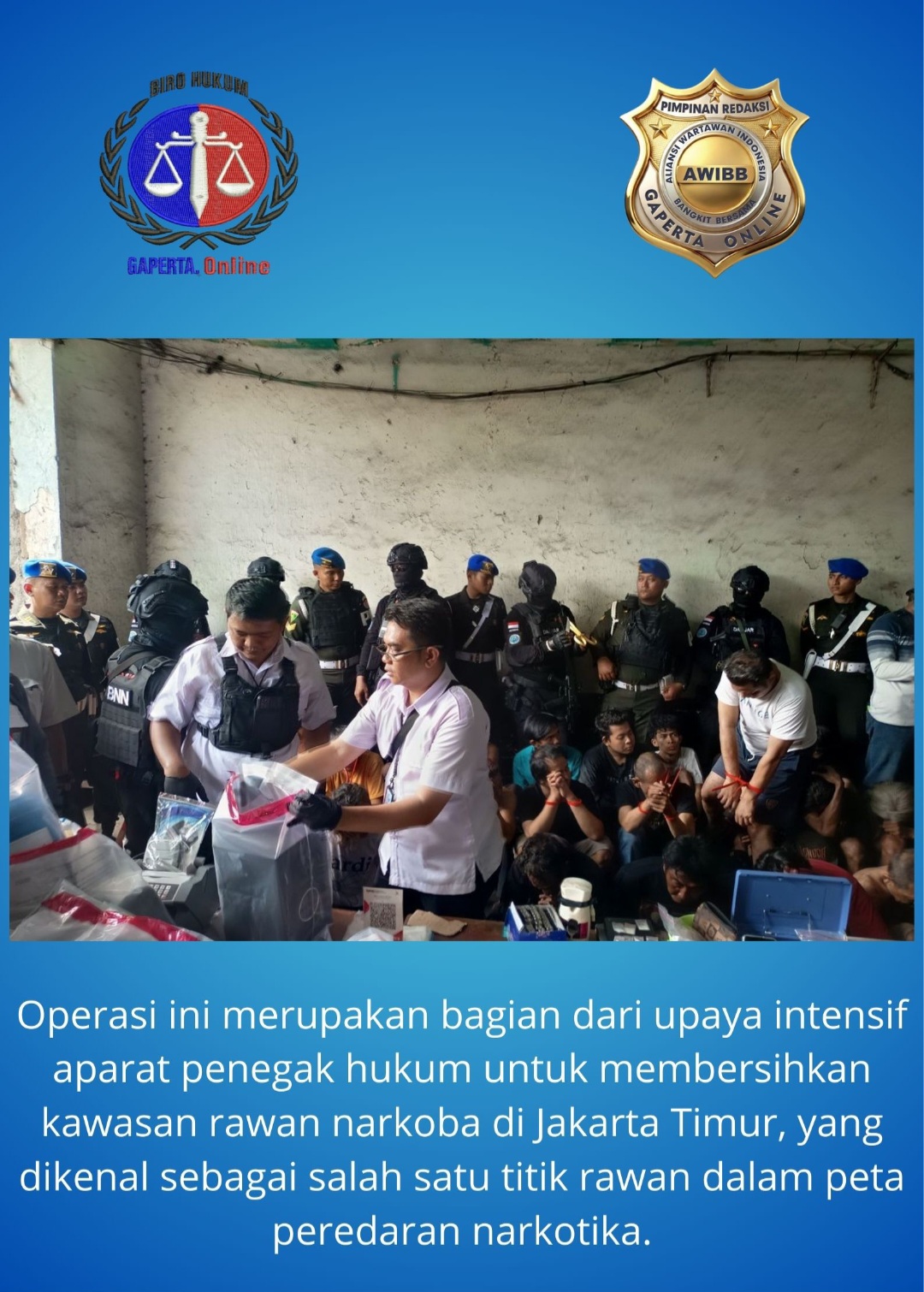 Operasi terpadu yang dimulai pukul 11.00 WIB ini menargetkan sejumlah rumah yang diduga kuat menjadi pusat distribusi dan penyimpanan narkotika.