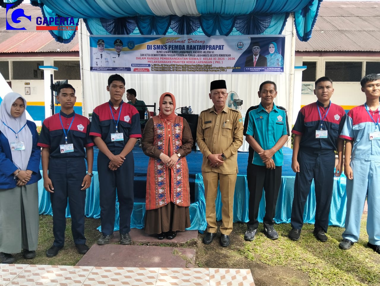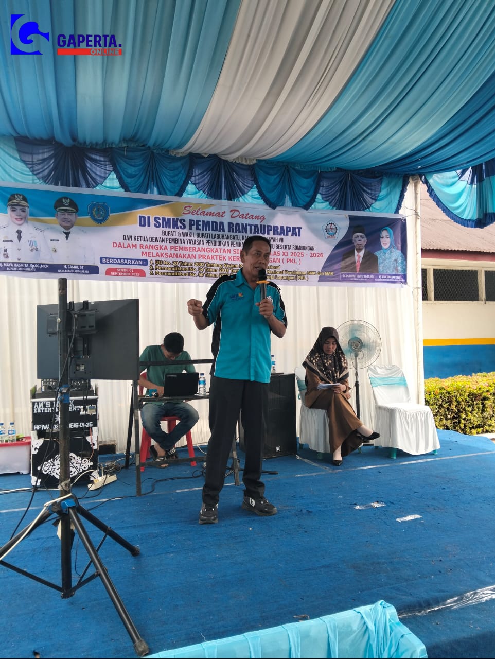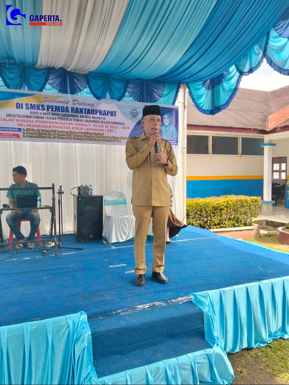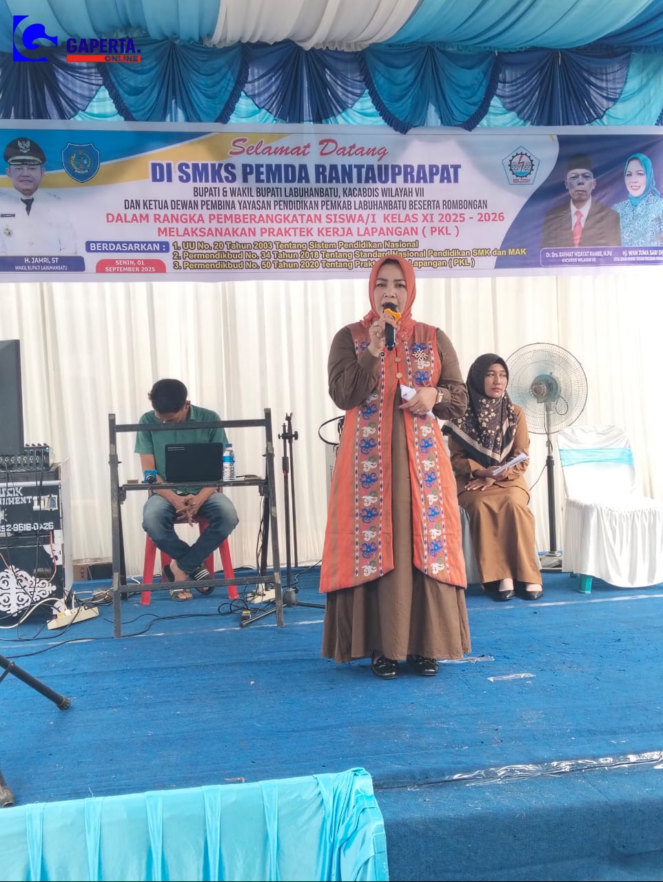 Ketua Yayasan Pendidikan Pemkab, Hj. Wan Juma Sari Dewi, secara resmi melepas siswa-siswi SMKS Pemda Rantauprapat untuk melaksanakan Praktik Kerja Industri (Prakerin). Acara pelepasan berlangsung di lapangan sekolah, Jalan K.H. Dewantara No. 104, Sioldengan, Bakaran Batu, Rantau Selatan, Labuhanbatu, pada Senin (01/09/2025).