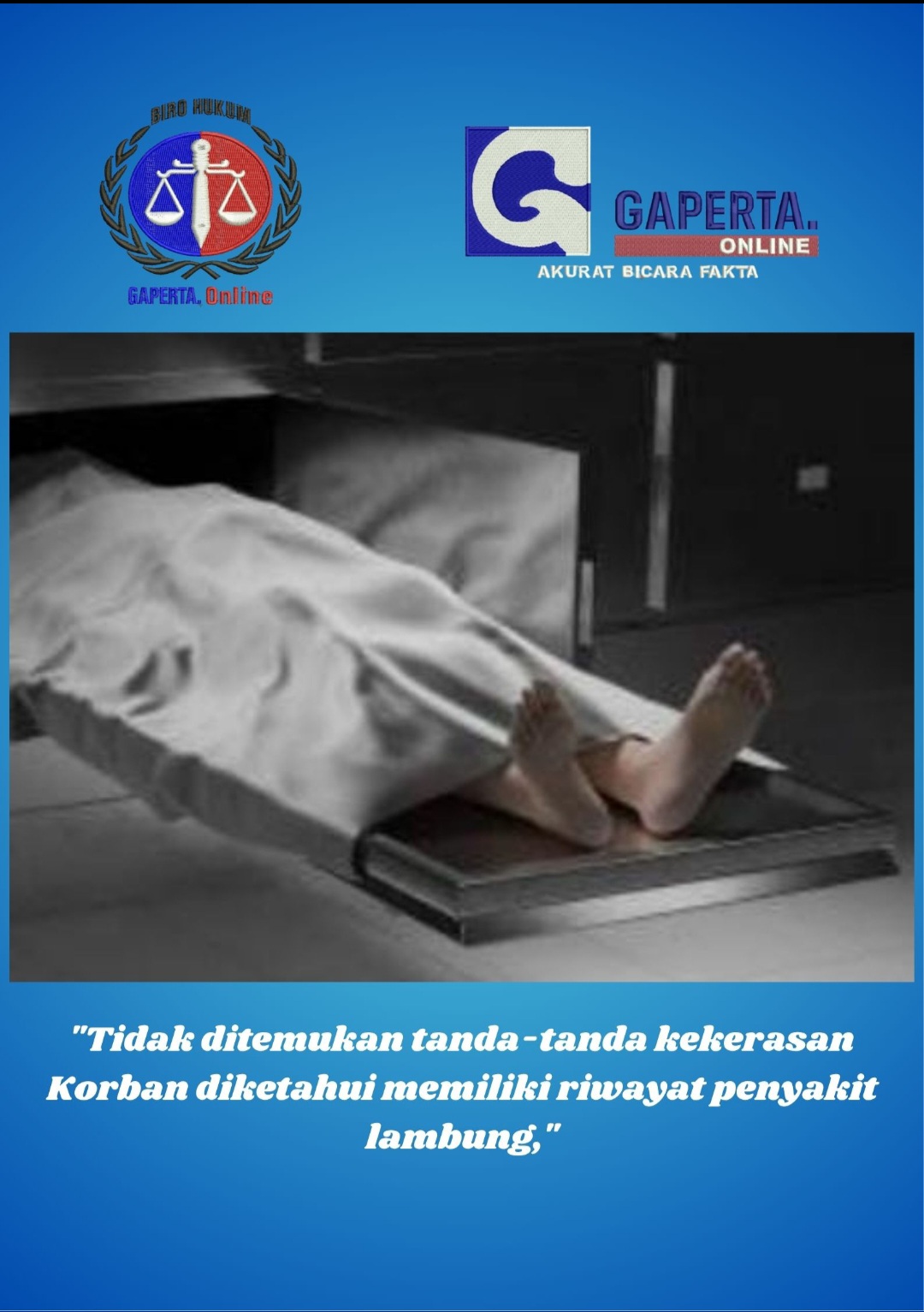 “Tidak ditemukan tanda-tanda kekerasan. Korban diketahui memiliki riwayat penyakit lambung,” imbuhnya.